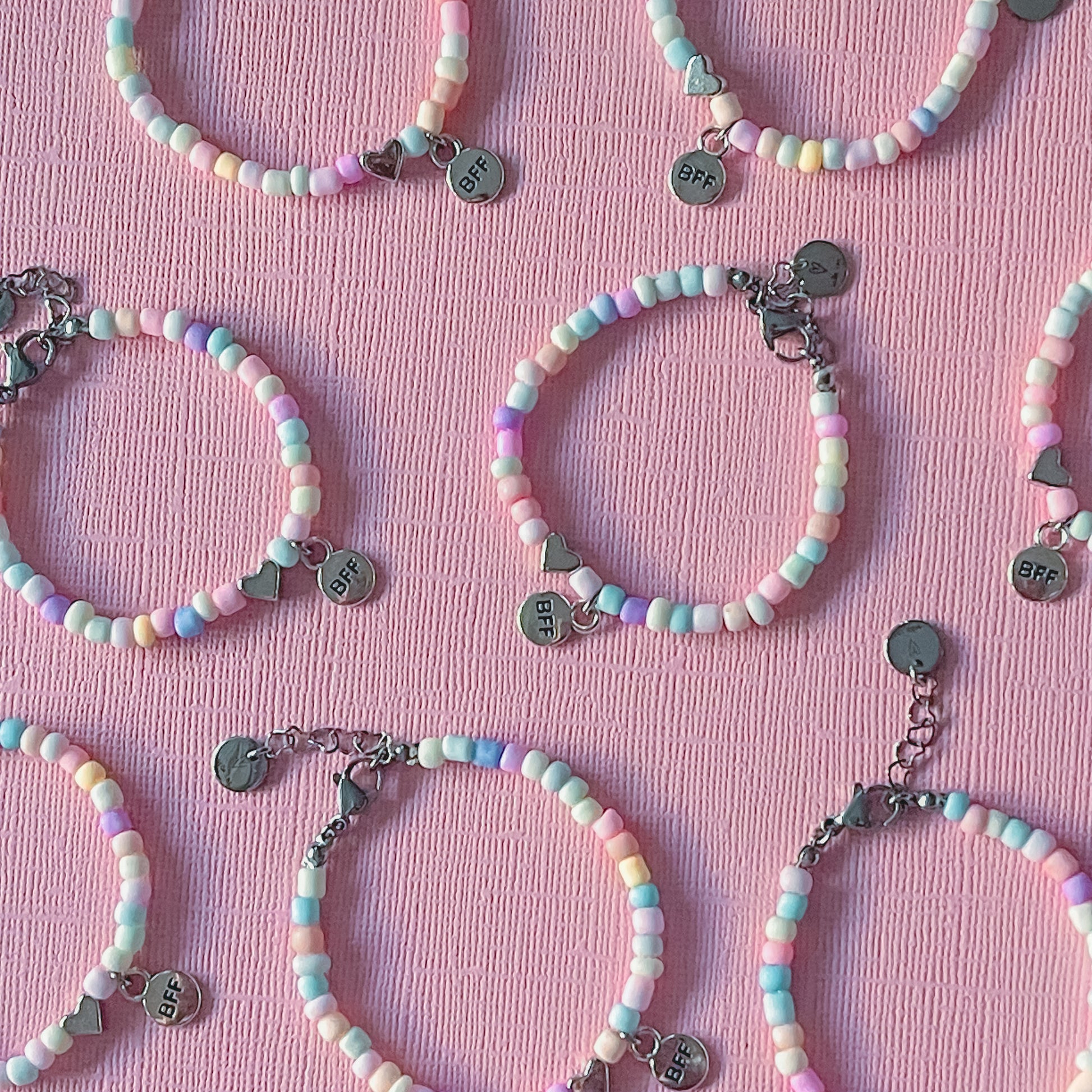 Celebrate friendship with our adorable BFF bracelets, designed to fit as many little wrists as needed because BFFs don't just come in pairs! Each bracelet measures 13cm with a 2cm extender, ensuring a perfect fit for every bestie.
